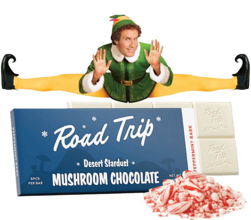 Road Trip Mushroom Chocolate Bar – Peppermint Bark – Christmas Edition